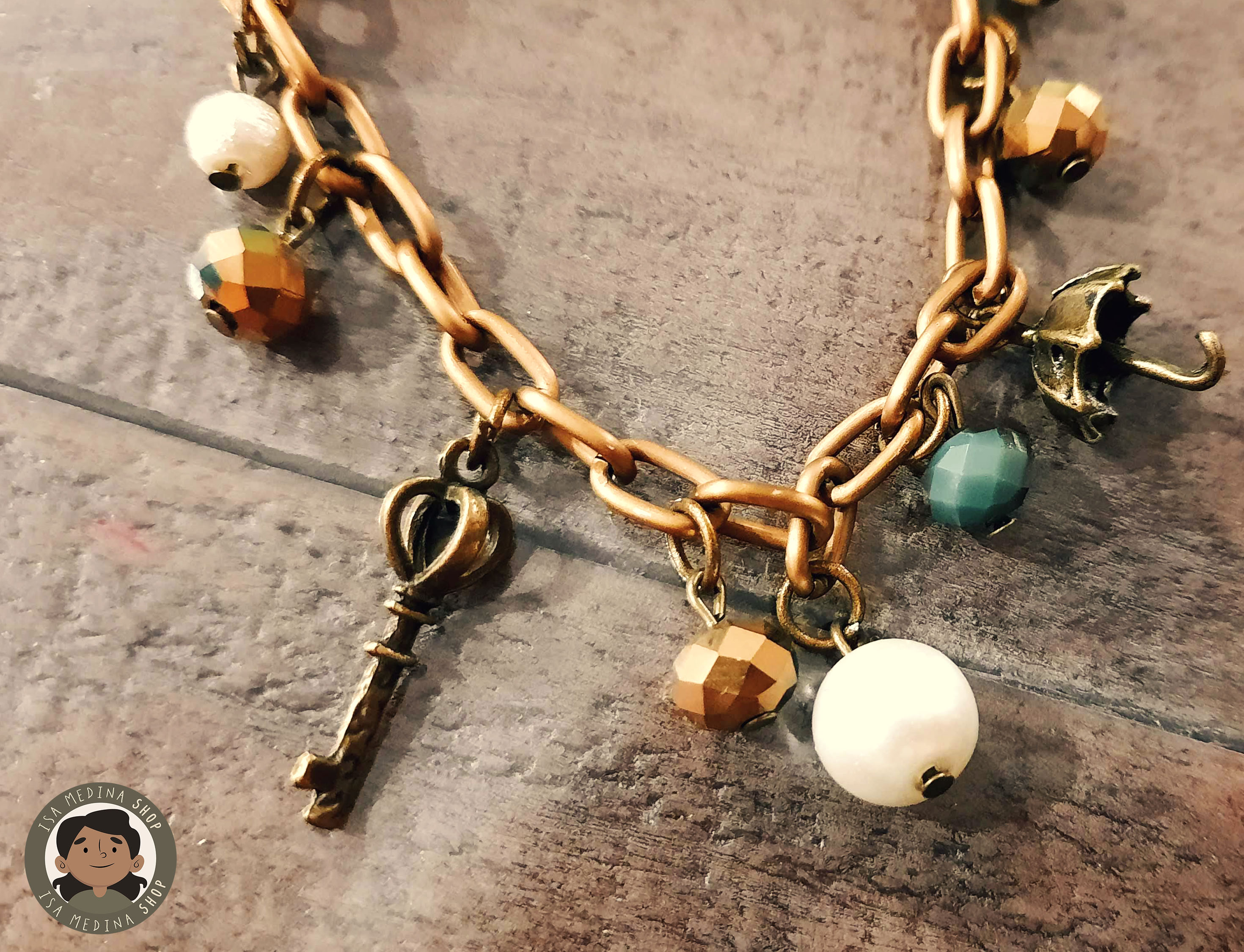 Una pulsera con toque vintage y dijes de bronce envejecido