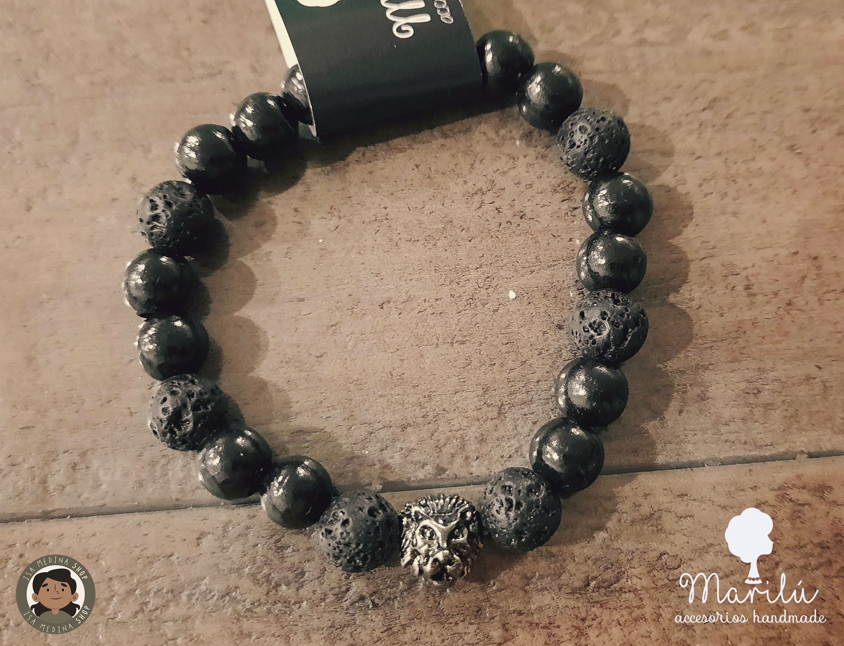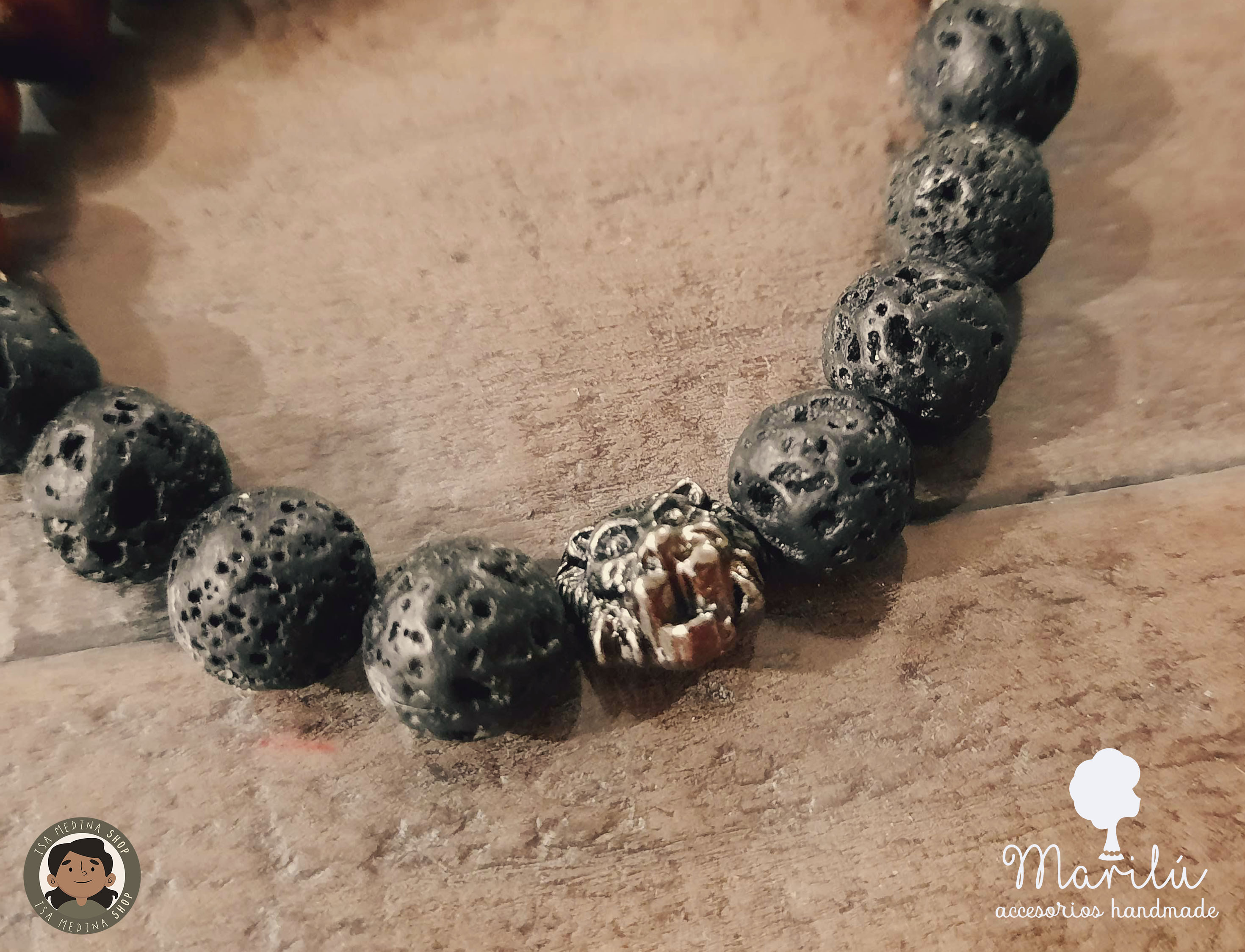 Esta pulsera forma parte de la colección Marilú. Hecha a mano con piedra volcánica.