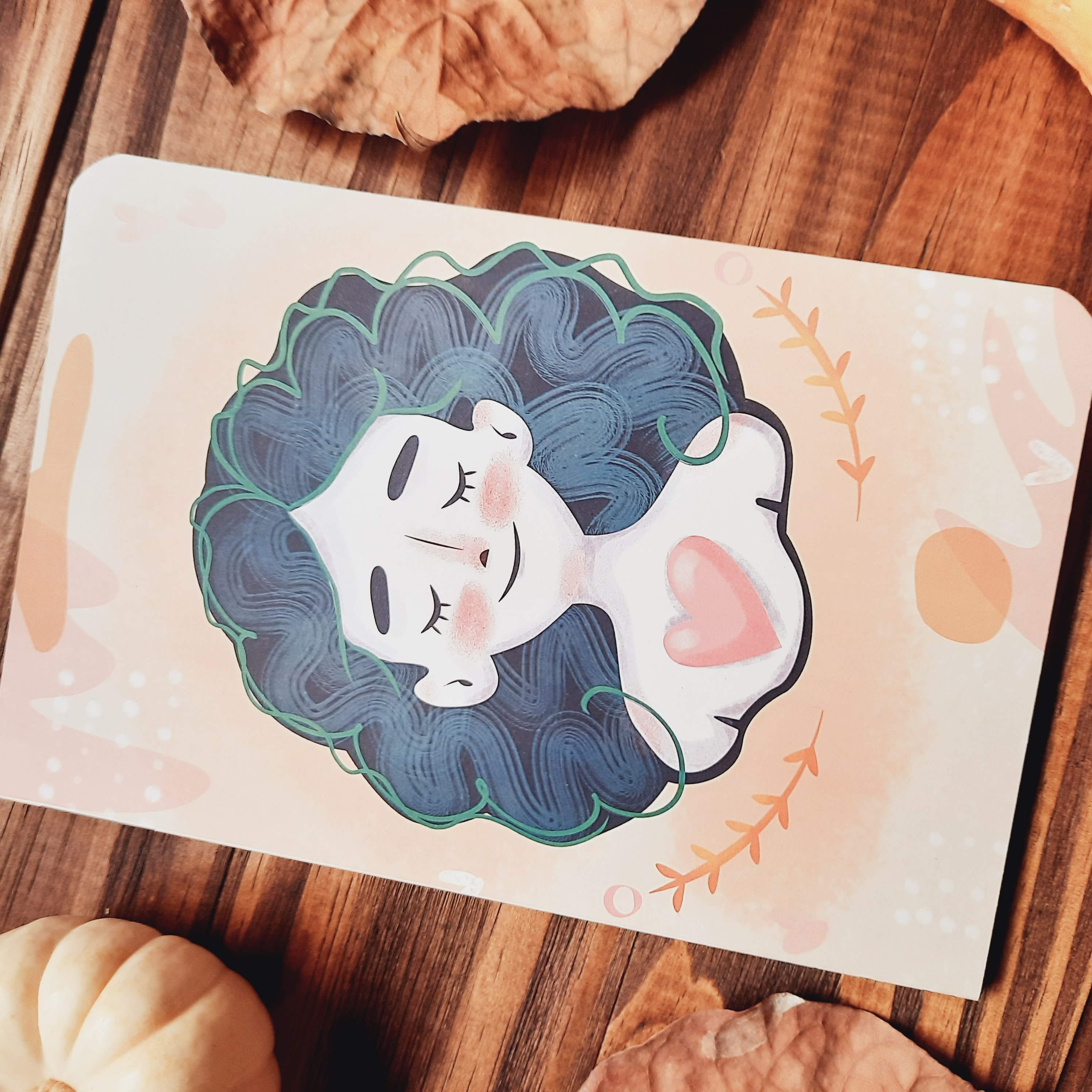 Un lindo cuaderno de gatito con sombrerito de hongo